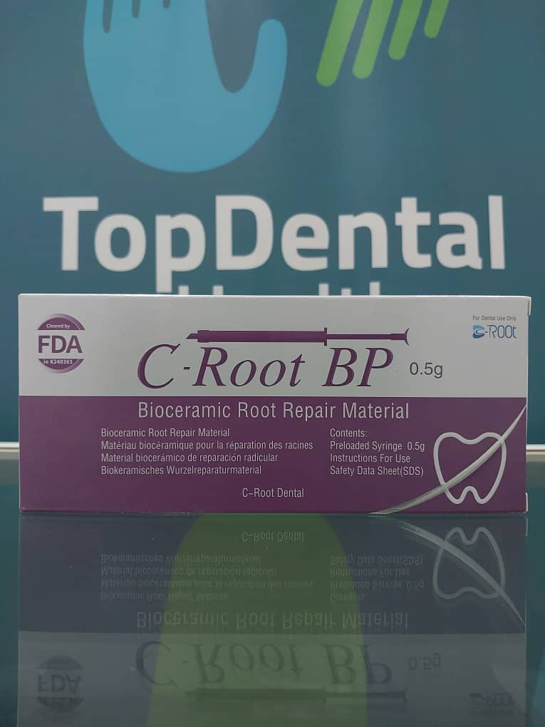 El reparador de canales dentales C-ROOT BP es un material o masilla biocerámica premezclada para la reparación de raíces, que utiliza el mismo silicato de estroncio patentado que C-Root SP. Este producto promueve la cicatrización acelerada en solo 3 meses y la formación de puentes dentinarios.